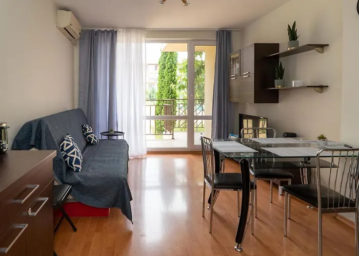 Está a solo 15 minutos andando del centro de Sunny Beach. El Parque de atracciones Sunny Beach se sitúa a una distancia de 1 km de este apartamento y el aeropuerto Burgas, a menos de 28 minutos en coche.
